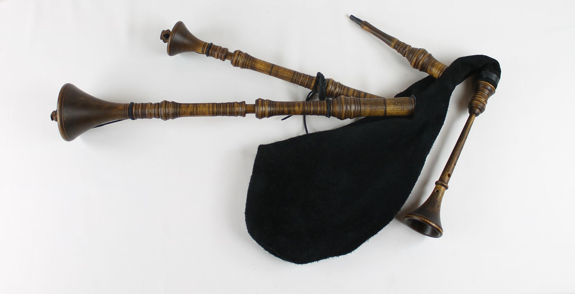 Die Grundausstattung einer jeden großen mittelalterlichen Sackpfeife ist ein großer Bordun, ein Spielpfeifenrohr aus Ahorn mit einfachen Tonlöchern sowie ein Ledersack mit Dichtmittel.